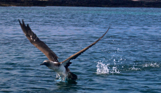 2:00-4:00 We took a walk today from one side of Santa Fe Island to the other over a small saddle from leeward to windward. On the leeward side, we saw some blue footed boobies,