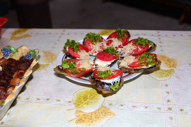 We are cozy warm. On the table are some baked eggplant ovals with tomato and cheese. Zoya our camp hostess/cook brings in a hot broth with vegetables and potatoes, followed by a chicken and spiral pasta dish. We have assorted cookies, candies, dried fruits, and tea to finish our meal.